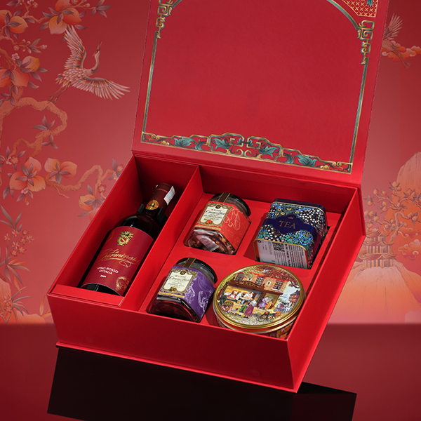 Hộp Quà Tặng Phát Lộc La Carminaia Vino Rosso d’Italia mang phong cách Ý cổ điển, nổi bật với chai vang đỏ mềm mại, dễ uống. Kết hợp cùng trà Anh, bánh quy Đan Mạch và hạt dinh dưỡng cao cấp, tất cả được trình bày trong hộp quà ép kim sang trọng. Phù hợp tặng Tết, khai trương, tri ân khách hàng. Dịch vụ in logo miễn phí từ 10 hộp, giao hàng toàn quốc nhanh chóng.