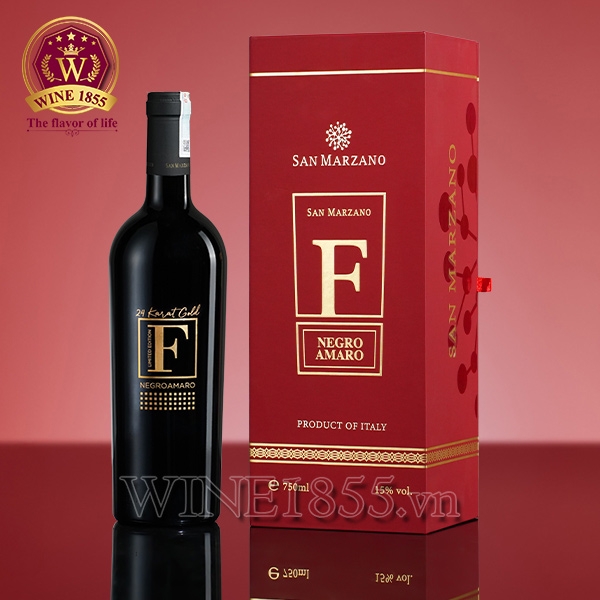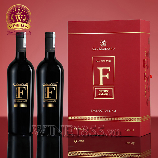 Rượu vang F Gold 24 Karat hay còn gọi là "Vang F Vàng" là tác phẩm nghệ thuật độc đáo đến từ nước Ý – nơi khởi nguồn của những chai vang làm say lòng thực khách. Với lớp vỏ mạ vàng 24K cùng chất rượu đậm đà từ giống nho Negroamaro đặc trưng, đây là lựa chọn không thể bỏ qua cho người yêu vang cao cấp.