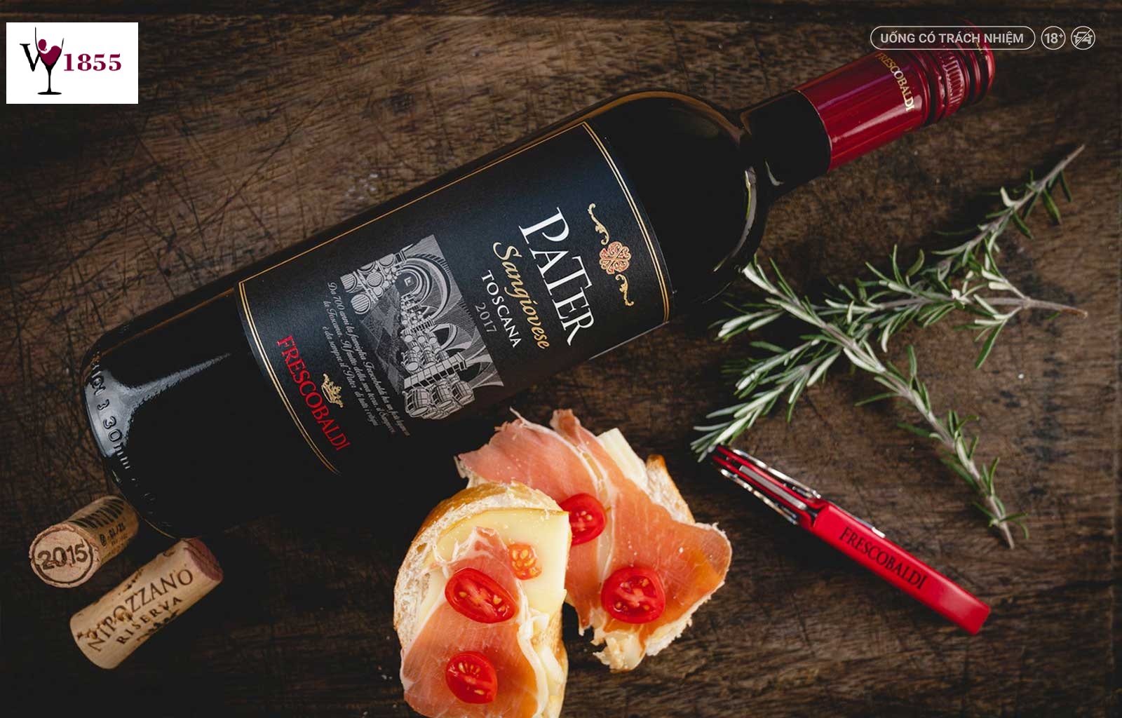 Rượu vang Frescobaldi Pater Toscana là một loại rượu vang đến từ truyền thống sản xuất rượu lâu đời của gia đình Frescobaldi: với hương thơm của các loại trái cây đỏ, nó được đặc trưng bởi sự dễ chịu, cân bằng và sự lưu lại tốt trong kết thúc. Một thời gian lão hóa trong thùng gỗ mang lại cho rượu cấu trúc và sự hài hòa.