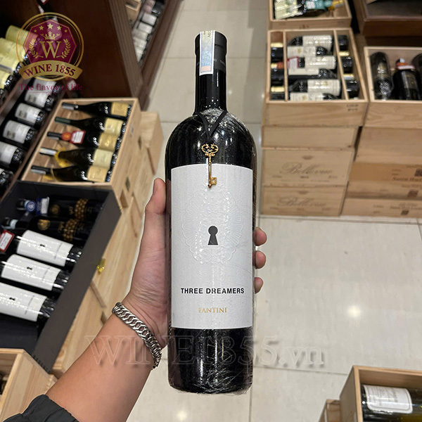 Three Dreamers được thiết kế như một biểu tượng vang cao quý của tập đoàn Fantini Group, Một cánh cửa trắng thần bí và một chiếc chìa khóa vàng trên cổ chai, mời gọi “Hãy dùng tôi để mở cửa giấc mơ của bạn”. Chai vang thiết kế sang trọng, lịch lãm và độc đáo, phù hợp là một món quà tặng cho doanh nhân, cho những đối tác quan trọng, quà biếu tặng Sếp, cấp trên, những con người “biến giấc mơ thành hiện thực” làm nên thành công của các doanh nghiệp.